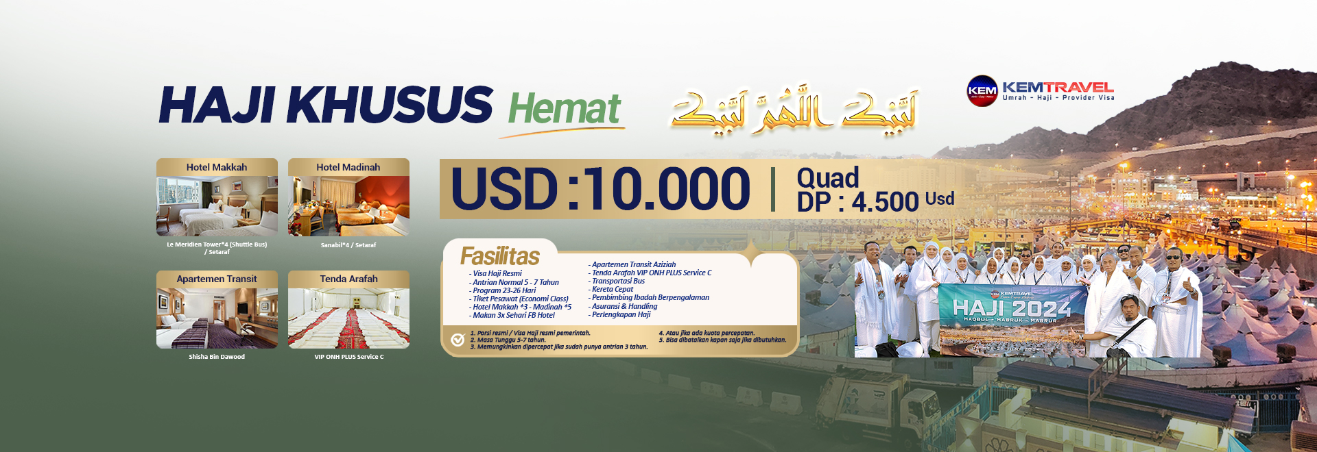 KEM TRAVEL menyiapkan seluruh kebutuhan selama perjalanan haji dan umrah.