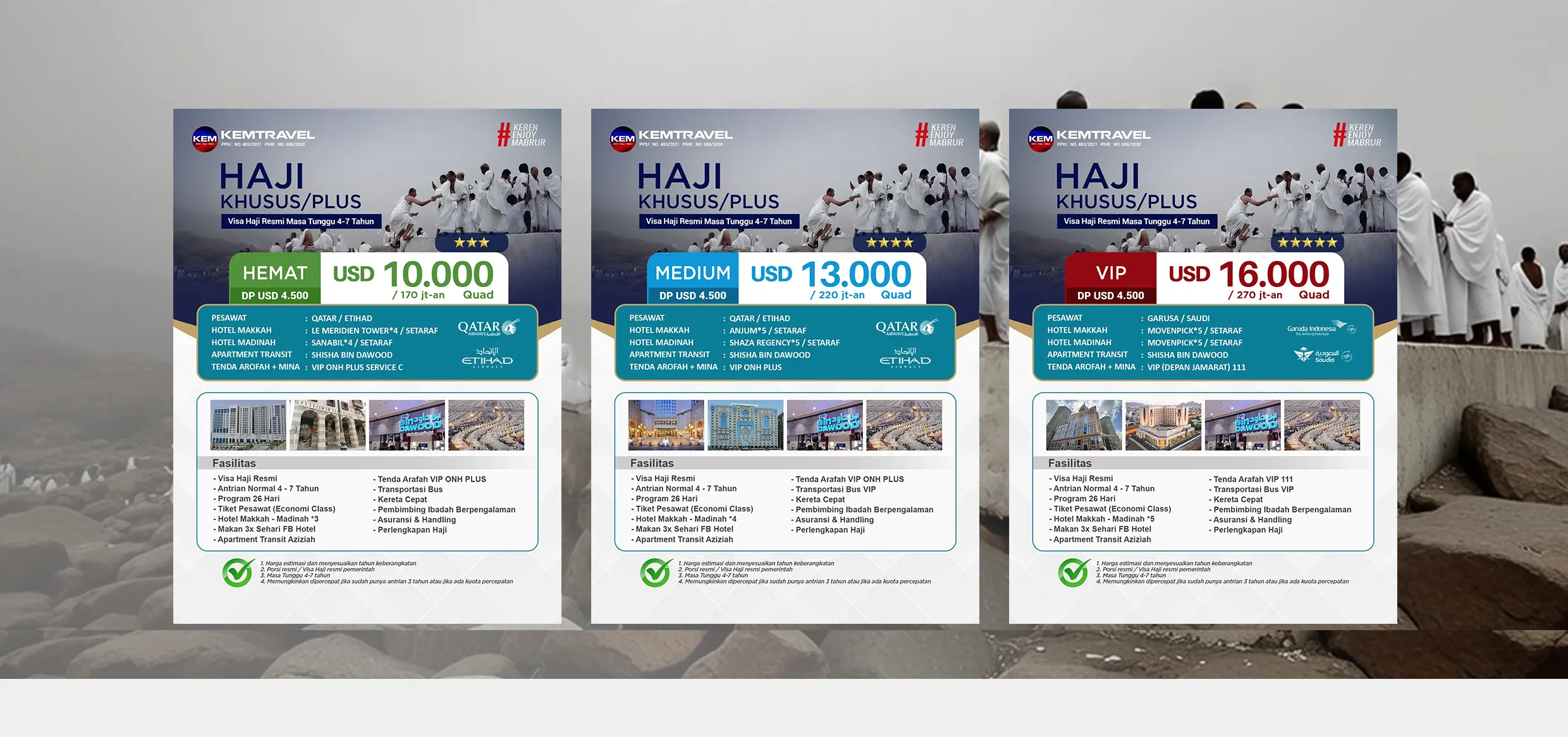 Perkenalkan kami PT. KEMANG NUSANTARA TRAVEL merupakan penyelenggara umroh dengan izin resmi dari Departemen Agama Republik Indonesia. PT KEMANG NUSANTARA menyediakan paket perjalanan ibadah umrah mulai dari paket regular sampai dengan umrah VVIP bintang 5. Kami mempunyai standard pelayanan dengan Harga paket yang kompetitif. PT KEMANG NUSANTARA TRAVEL juga melayani request paket pribadi atau korporat sesuai kebutuhan pelanggan dan mitra kami.