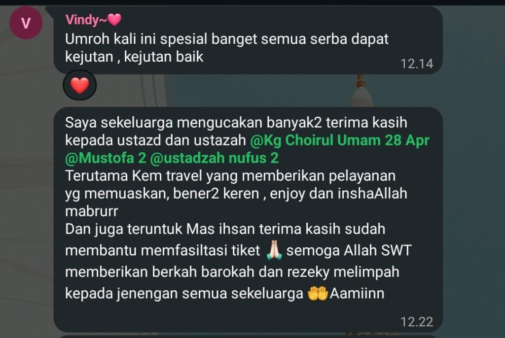 Tak tanggung-tanggung, KEMTRAVEL yang telah memiliki nama besar, ia pilih sebagai kendaraan untuk melayani tamu-tamu Allah. Harapannya adalah bahwa nama besar KEMTRAVEL sebagai kendaraan yang dikendalikan oleh Sumber Daya Manusia berbobot MARBOT sebagai Ikon Pelayan Tamu Allah, dapat menjawab kebutuhan calon Jama’ah ke Tanah Suci di Tanah Air, akhirnya KemTravel yang telah memiliki nama besar itu pun seolah menemukan ruh-nya kembali setelah ditinggal mangkat oleh pendirinya. Semoga KemTravel dimampukan oleh Allah untuk menjadi pelayan para Tamu-Nya dengan professional dan penuh Amanah. Aamiin.