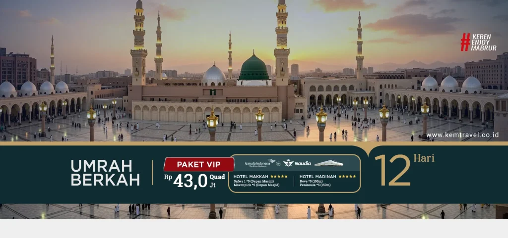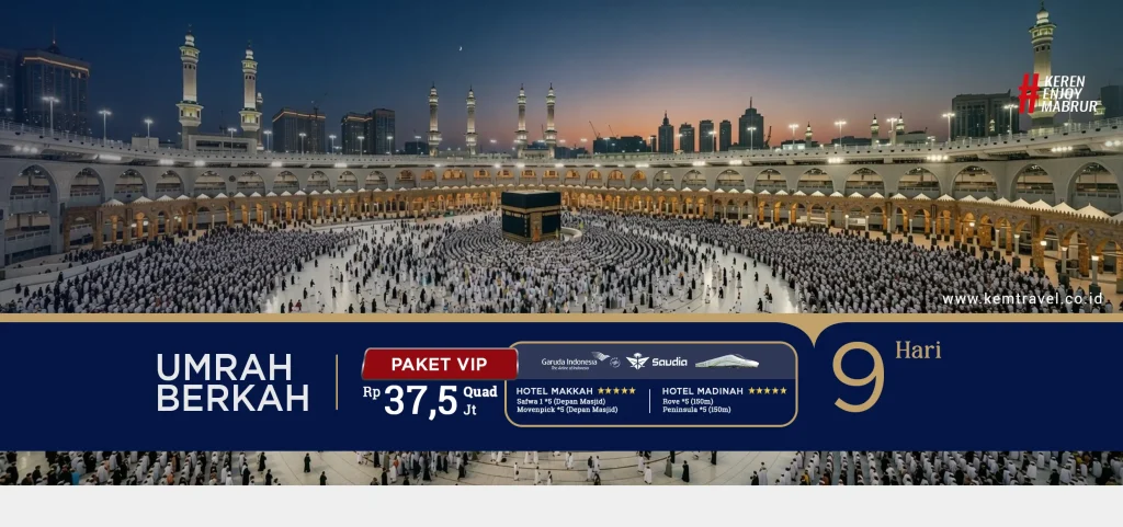 Keberangkatan dijamin 100%. Raih Umroh yang Mabrur dan Maqbullah bersama KEM TRAVEL. Menuju baitullah, bersihkan diri, sucikan hati karena Allah. Menggapai RidhoNya.